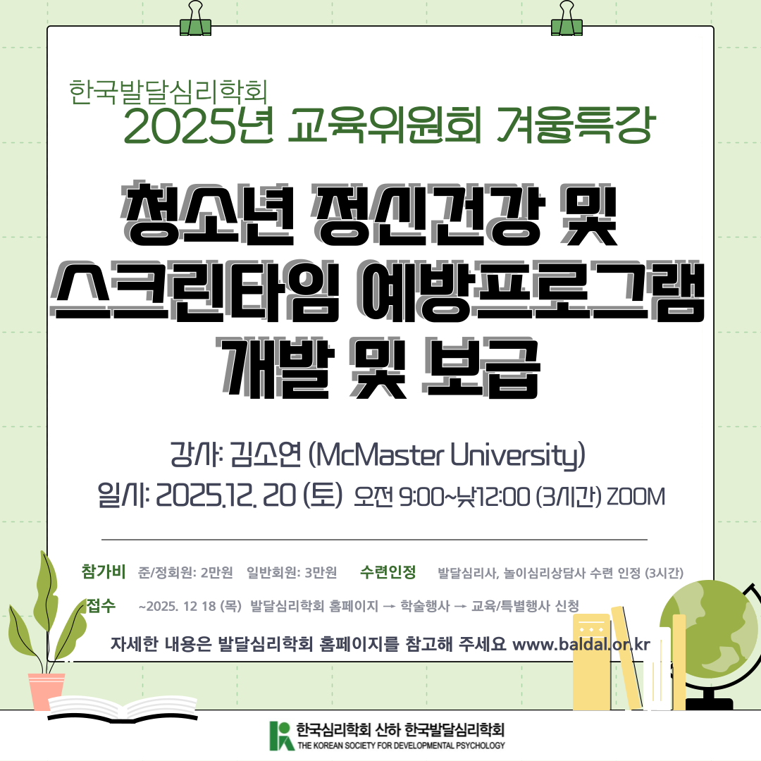 - 2025년 한국발달심리학회 학술대회 및 심포지엄 참석확인증 발급 안내 2025.11.13