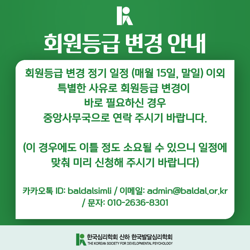 - [한국심리학회지:발달] 39권 1호 발간 안내 및 39권 2호 원고 접수 공지 2026.03.15