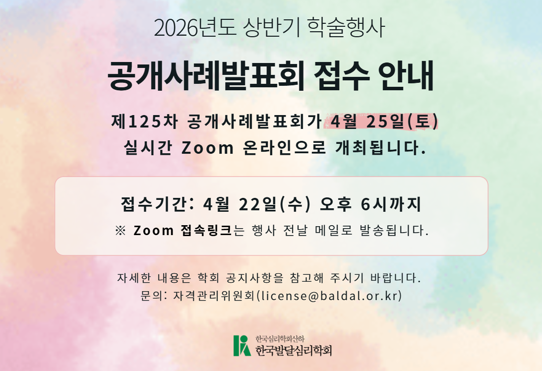 한국발달심리학회 제125차(4월) 공개사례발표회 - 온라인 개최